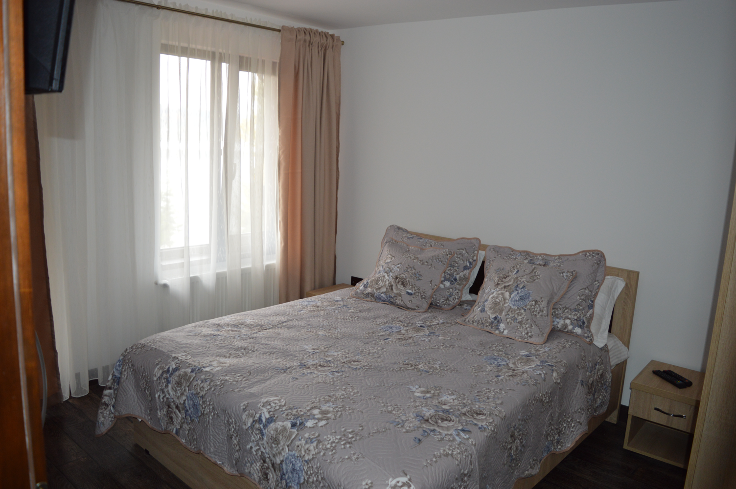 > 2 camere disponibile > capacitate maxima 2 adulti + 2 copii > pat matrimonial mare, confortabil + canapea mare extensibila > TV cu diagonala mare, programe diverse prin satelit > baie proprie cu cabina de dus sau cada > iesire directa pe terasa proprie, cu vedere la lacul Colibita. Tarif cazare: 250 RON/ zi